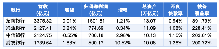 四家股份行中,招商银行无论是营收、净利润,还是总资产、不良贷款率及拨备覆盖率都遥遥领先,稳坐股份行头把“交椅”。