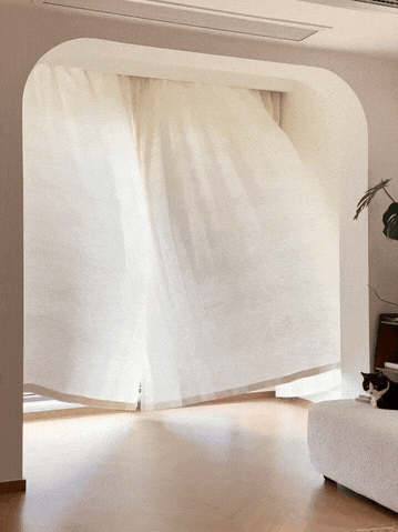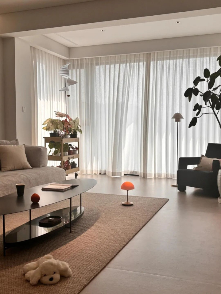 客厅只需要装一层柔柔的白纱,私密性和氛围感就都有了~