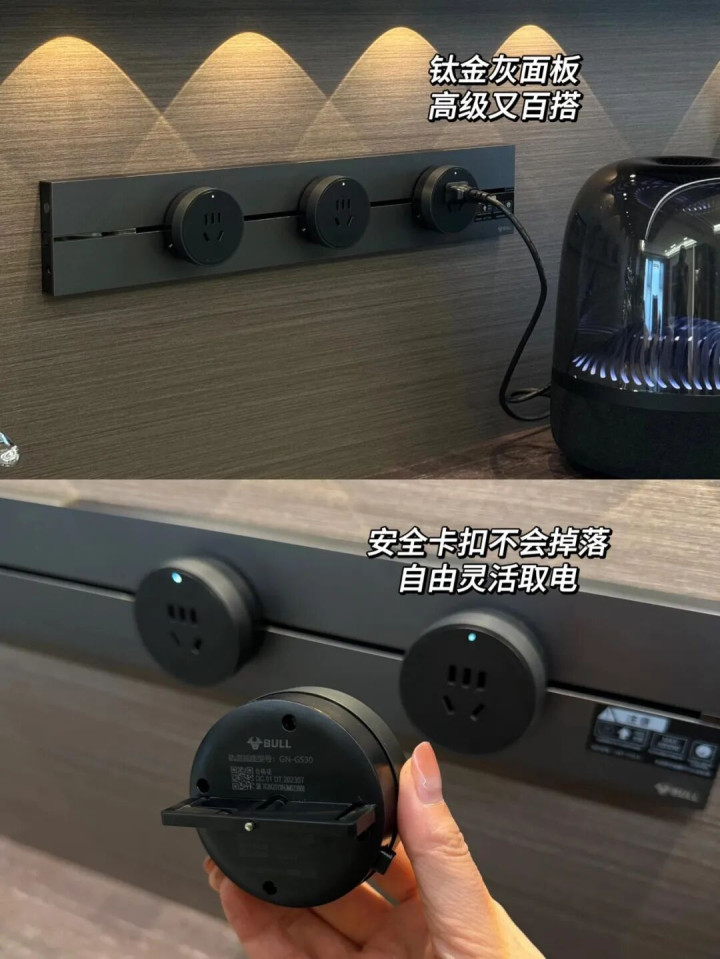 插头可以在轨道上的任意位置取电,就不会有电线太短充不上的问题啦。插头的数量也可以自由增减,根本不用担心插座不够用,拿取使用都非常方便。