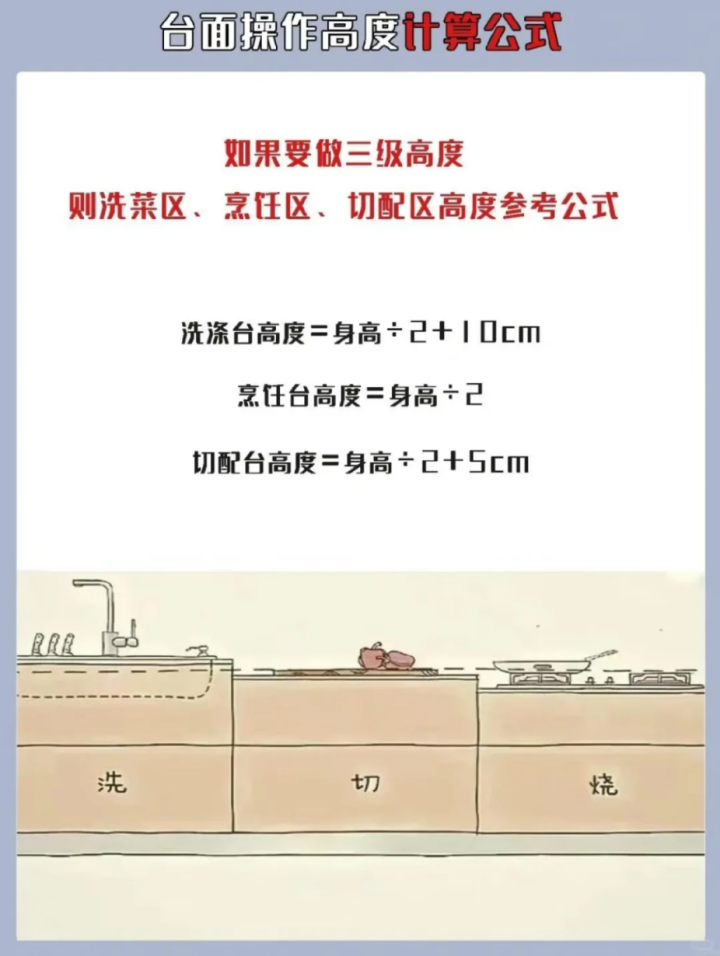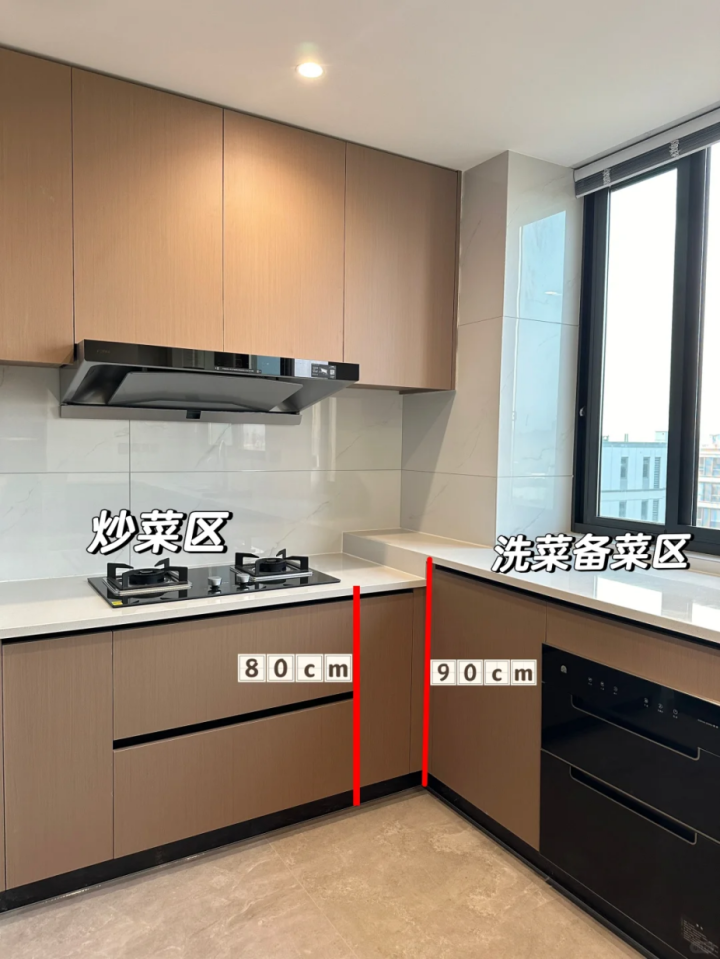 我家洗菜区域是做的90,炒菜区域77,一定要根据自己的身高做,不要相信装修师傅和设计师的常规尺寸,毕竟生活是自己过,炒菜架不不架胳膊,洗菜累不累腰只有自己懂。