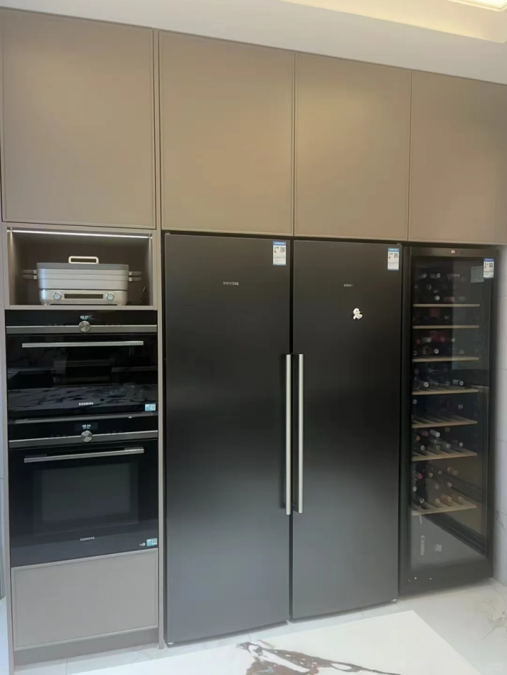 嵌入式电器面板与柜子做的同一种风格,看起来整齐划一,颜值超高。