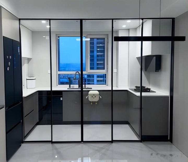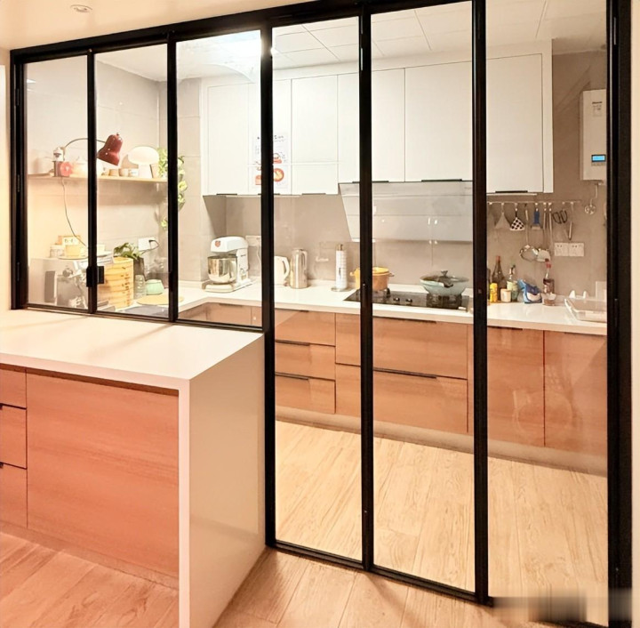 有的人不懂,在厨房去装普通的轨道推拉门,看着美观,性价比也高。