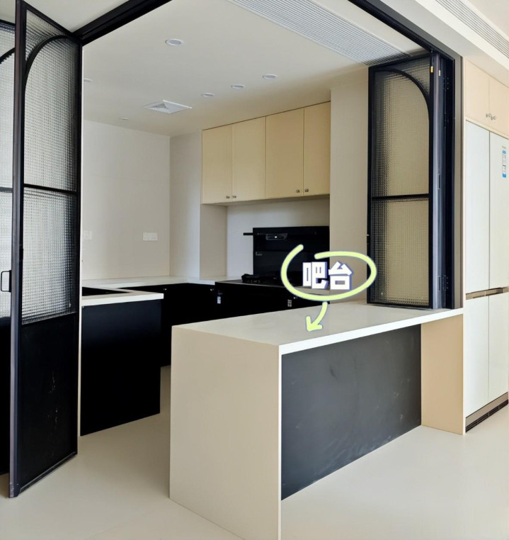 有的时候想,与其装普通推拉门鸡肋,我们还不如不装门,去做开放式的厨房好用呢!