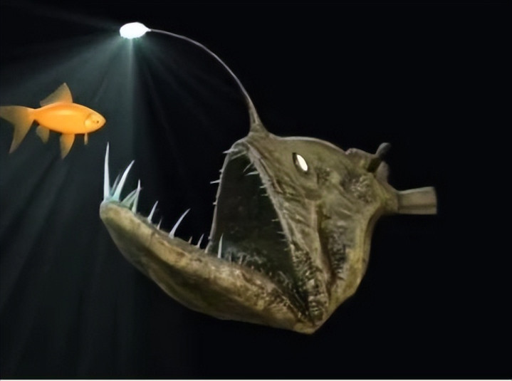 雌性安康鱼头部的发光拟饵器官,发出的生物光,为雄性指明了谈路,当雄性安康鱼发现雌性后,就会主动“挂”在雌性的身上,然后少许点融入雌性安康鱼的身体,最终成为它身体的一部分。