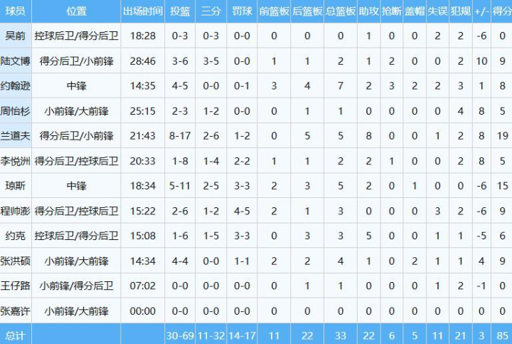 本场比赛,程帅澎时隔一个多月迎来了复出,替补出战约15分钟,投篮6中2,其中三分2中1,罚球5中4贡献9分3板,出现了3次失误,这哥们过去遭遇了右侧臀大肌部分撕裂。