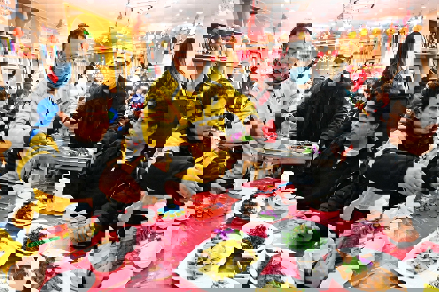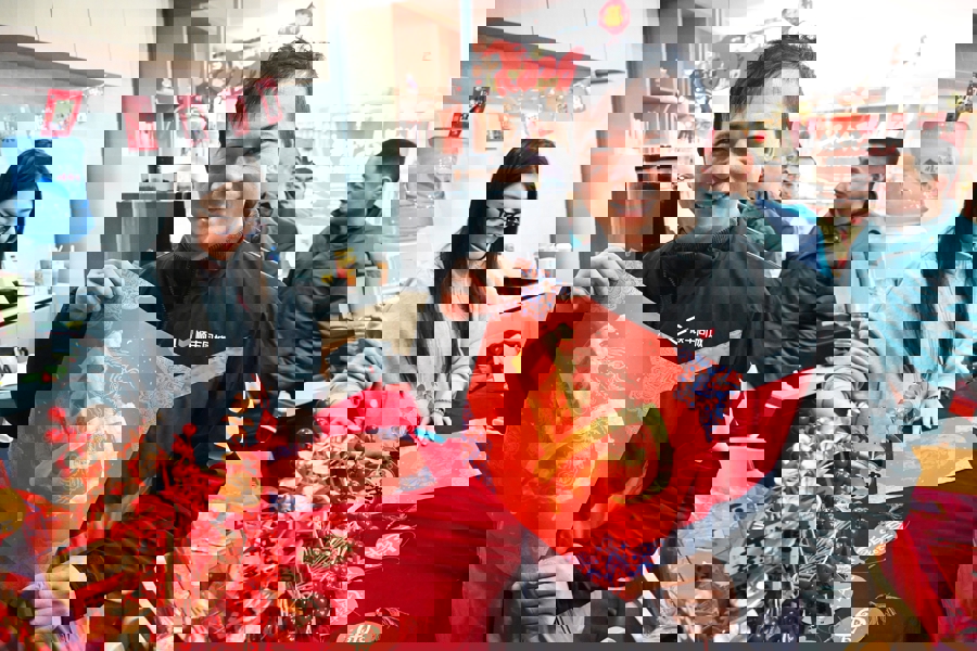 来自邮政、京东、美团、叮咚、菜鸟驿站、顺丰同城等多家平台的外卖骑手和环卫物业、家政服务等100多名新就业群体代表,卸下奔波的疲惫,围坐共餐,在欢声笑语中感受来自街道的深情关怀与新春祝福。