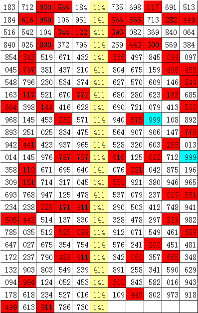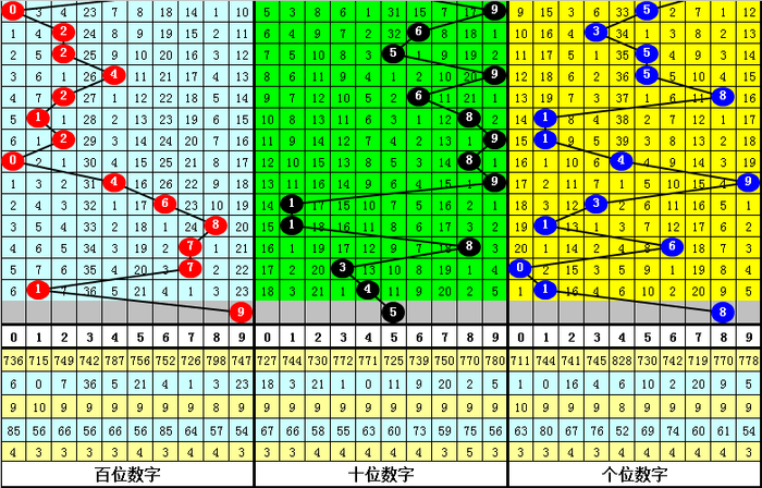 另外,在组选0-9的号码分布中,号码1、4表现最冷,开出4次;号码6走势最热,开出了11次。本期防号码组146全部轮空。