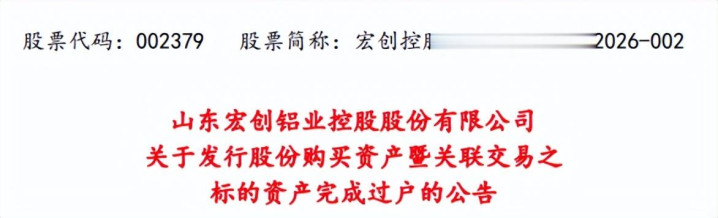 本次交易中,宏创控股发行约118.95亿股股份,收购宏拓实业100%股权。交易完成后,宏创控股将从单一铝加工企业一跃成为覆盖氧化铝、电解铝及铝深加工的全产业链龙头,资产规模突破千亿元。