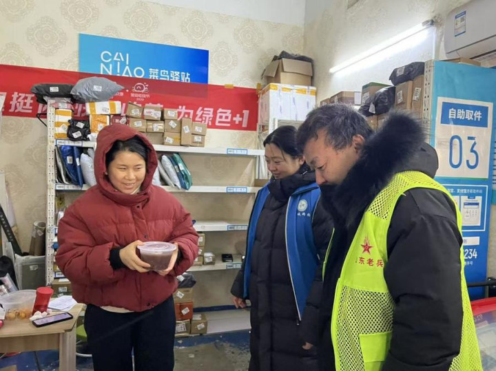 志愿者们还专门来到菜鸟驿站,为正在忙碌分拣包裹的工作人员送上腊八粥。“平时都是我们为大家服务,今天反而是社区来慰问我们,真的很感动。”驿站工作人员捧着热粥感慨道。每到一处,志愿者都会亲切地与大家交谈,了解他们的工作生活情况,提醒他们在忙碌工作中注意保暖和安全。